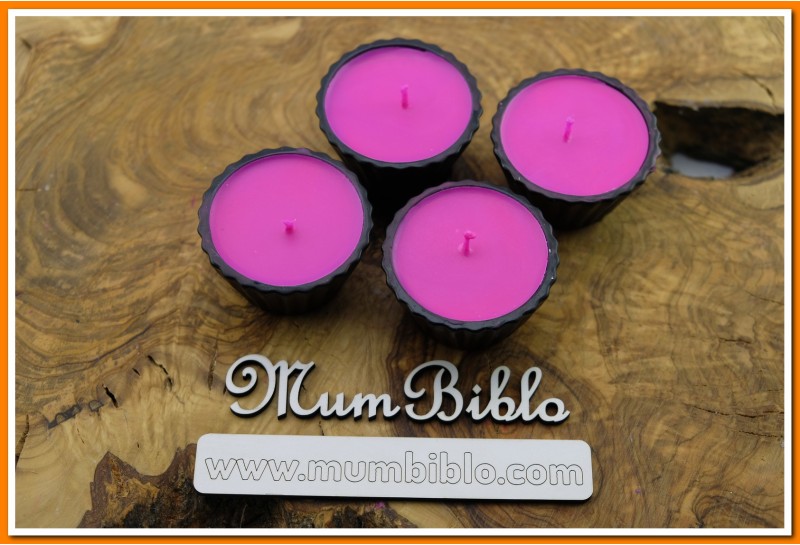Mumluk Cupcake Siyah Renk Pembe Mum. Ham maddesi taş tozudur, içi ve dışı boyanmıştır. İçine Pembe renkli mum dökülmüştür. Tamamen el işçiliği ile üretilmiştir.