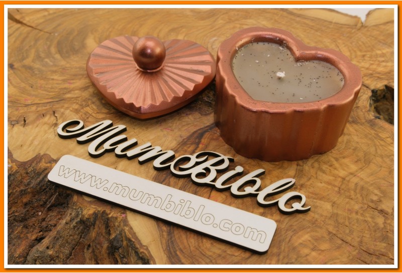 Dekoratif Mumluk Kalp Bakır Renk. Ham maddesi taş tozudur, içi ve dışı boyanmıştır. İçine kahveli mum dökülmüştür. Mum hammaddesi parafindir. Tamamen el işçiliği ile üretilmiştir. Önemli Bilgilendirme : Fitili yakılmış mum kesinlikle iade edilemez.