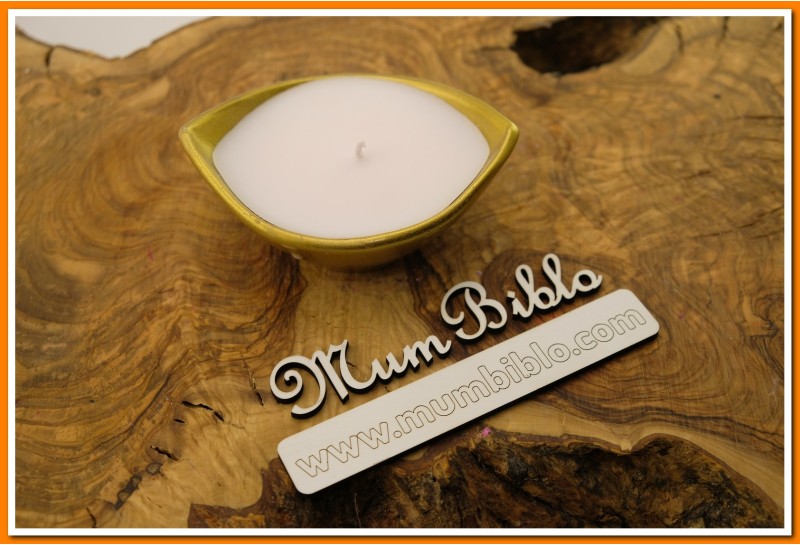 Dekoratif Yaprak Mumluk Altın Renkli. Ham maddesi taş tozudur, içi ve dışı boyanmıştır. İçine Beyaz renkli mum dökülmüştür. Tamamen el işçiliği ile üretilmiştir.