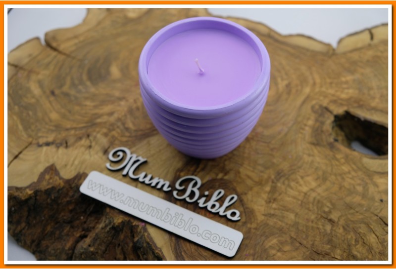 Sarmal Mumluk Dekoratif Lila Renk. Ham maddesi taş tozudur, içi ve dışı boyanmıştır. İçine lila renk mum dökülmüştür.  Tamamen el işçiliği ile üretilmiştir.